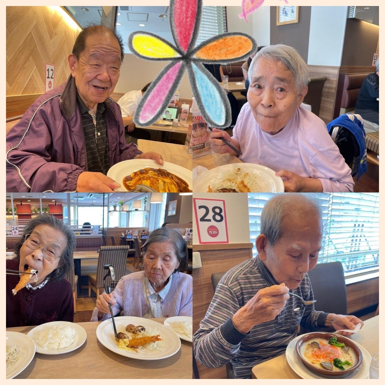 「おいしいね、楽しいね」「次はあそこへ行こうか」と終始笑顔の絶えない食事会になり、行事や外出の大切さを職員側も改めて実感することができました😌